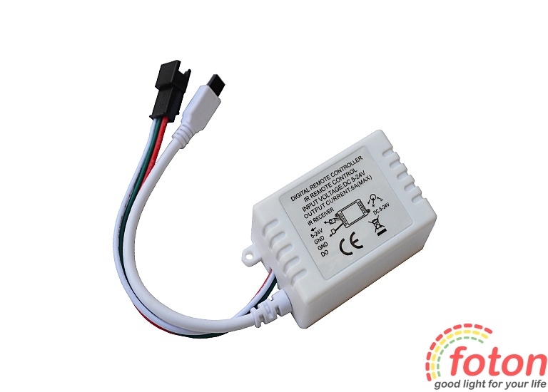 RGB Контролер має більше 200 програм і 64 рівня швидкості для керування пікселями. контролера 12 вольт, підключення здійснюється через роз'єм Power jack 2pin - 5,5mm Father Виносний інфрачервоний датчик.