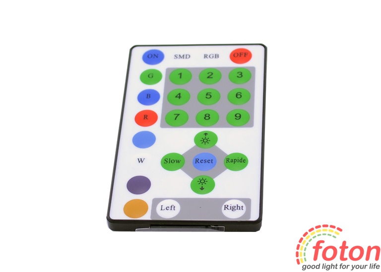 Контролер IR RGB 12А RW 3LED (27 buttons), вихідний струм 12А, загальний мінус, інфрачервоне дистанційне керування. Радіус дії пульта 10 метрів. Пульт на 27 кнопок.