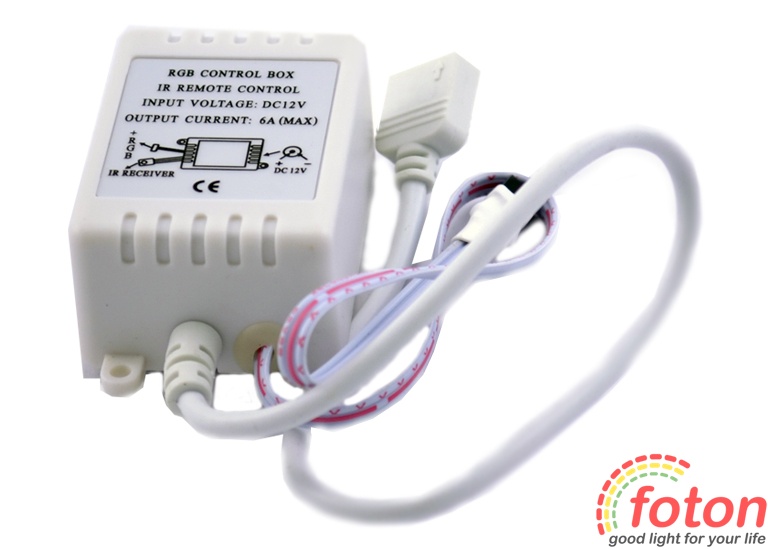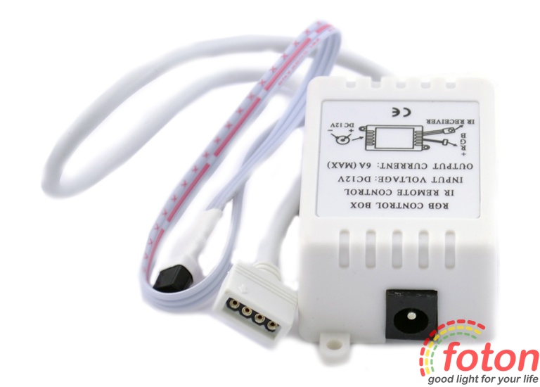 RGB Контролер має 4 динамічні режими та 16 статичних режимів. Є можливість керування яскравістю стрічки в статичних режимах та швидкістю мерехтіння в динамічних режимах. Контролер зберігає останню програму після вимкнення живлення.