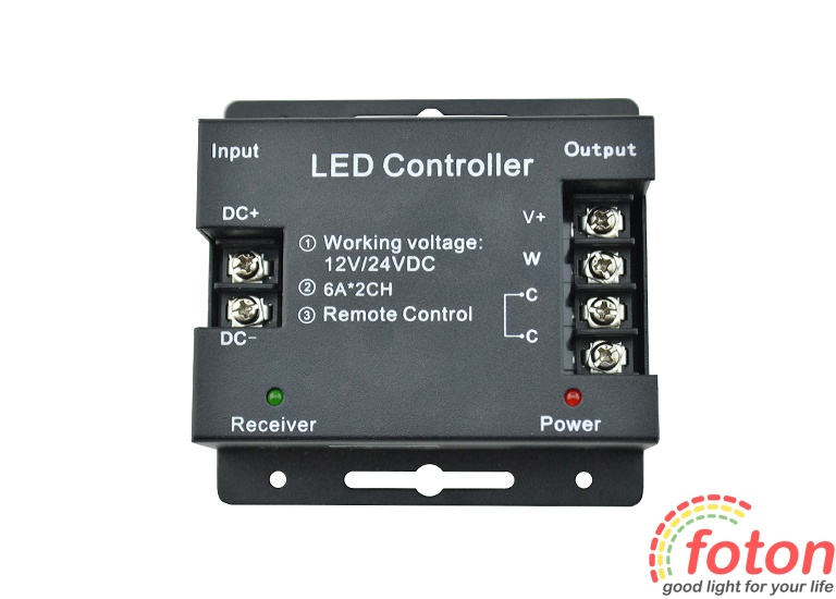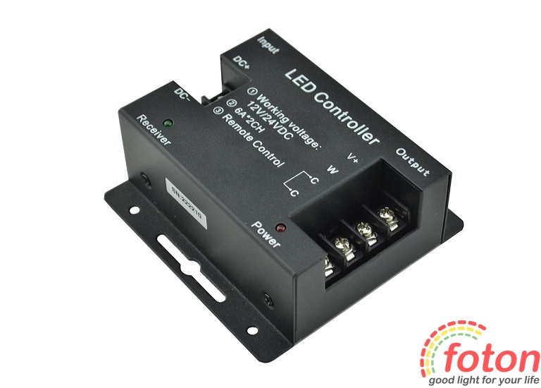 Даний контролер розрахований на підключення до 15м стрічки потужністю 9,6 Вт/м. LED/m) Multi White), або до 10м стрічки потужністю 14,4 Вт/м. White).