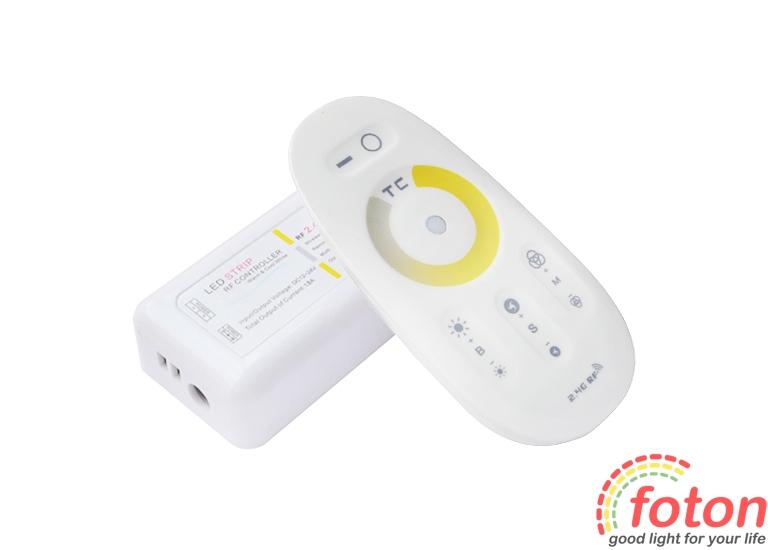 Контролер RF Multi White 18A White (Touch), вихідний струм 18А, радіо дистанційне керування. Радіус дії пульта до 30 метрів.Контролер призначений для світлодіодної стрічки типу Multi White, за допомогою сенсорного кільця дозволяє регулювати відтінок свічення стрічки від білого теплого до білого холодного кольору свічення до 0%. зберігає останню програму після відключення живлення. Радіо хвиля цього контролера може перетинатися з іншими радіочастотами таких самих пристроїв.