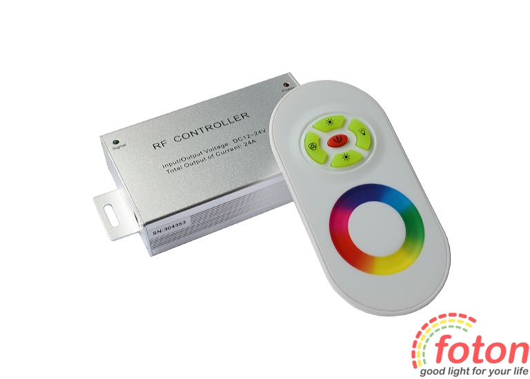 Контролер RF RGB 24А White (Touch), вихідний струм 24А, радіо дистанційне керування. Радіус дії пульта до 100 метрів.