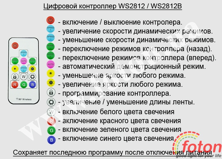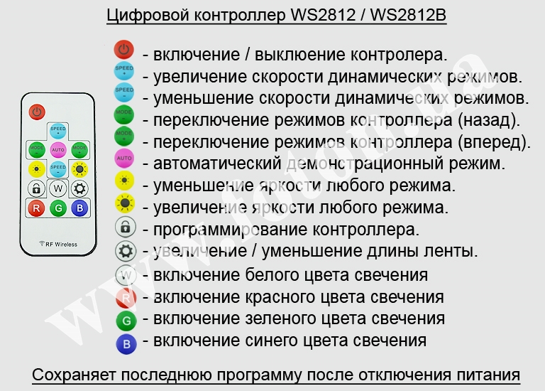 | Керування контролером: | RF SP103E WS2811/WS2812 |