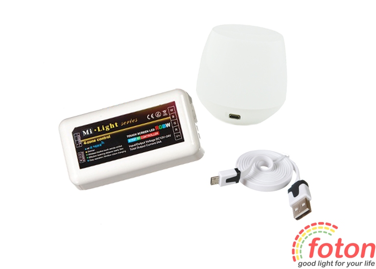 Контролер WI-FI RGBW 24A White (Touch), вихідний струм 24А, радіо дистанційне керування з пульта + можливість керувати контролером зі смартфона або планшета Радіус дії пульта до 100 метрів Пульт на 5 кнопок + сенсорне кільце