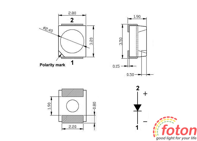 | Розміри (Д х Ш х В): | 3,5 х 2,8 х 1,9 мм |