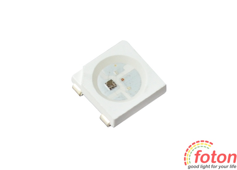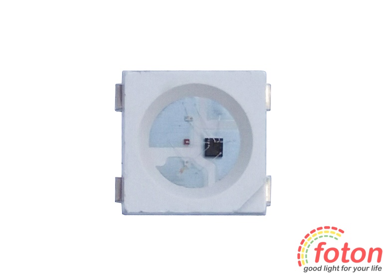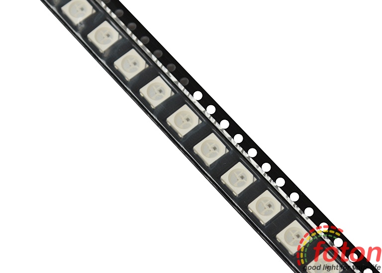 Розумні SMD світлодіоди мають велику популярність, широко застосовуються в керованих світловипромінюючих виробах. За допомогою керуючої мікросхеми WS2812B та трьох кристалів (червоний, зелений, синій) можна задати певну програму світіння для кожного світлодіода. Даний адресний smd світлодіод налічує чотири ніжки для розміщення його на платі. Розмір корпусу становить 5 мм x 5 мм x 1,7 мм. На відміну від звичайних світлодіодів RGB, ці адресні діоди мають вбудований контролер, який здійснює керування кольором, яскравістю та включенням світлодіода. Для керування розумними світлодіодами необхідно застосувати контролер на основі Arduino або інший пристрій.