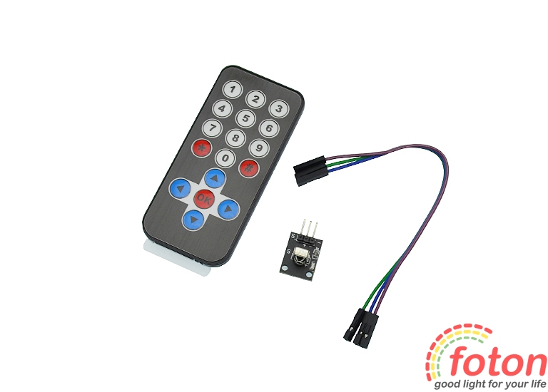 Міні бездротовий інфрачервоний пульт дистанційного керування Arduino складається з ультратонкого інфрачервоного пульта дистанційного керування та модуля інфрачервоного приймача. Це міні тонкий інфрачервоний пульт дистанційного керування з 17 функціональними клавішами. Його дальність передачі – до 8 метрів. Ідеально підходить для роботи з різним обладнанням у приміщенні.