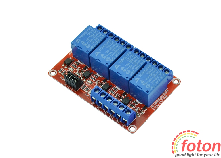 Модуль реле 4 каналу 12 В - це модуль електромеханічного чотириканального реле з опторозв'язкою та керуючою напругою 12В.