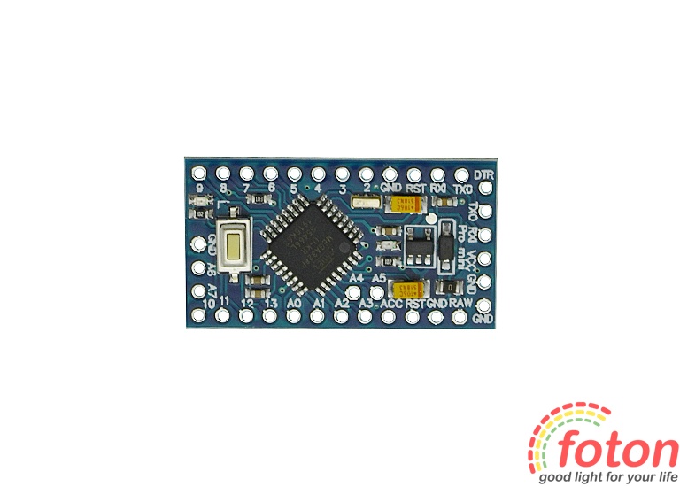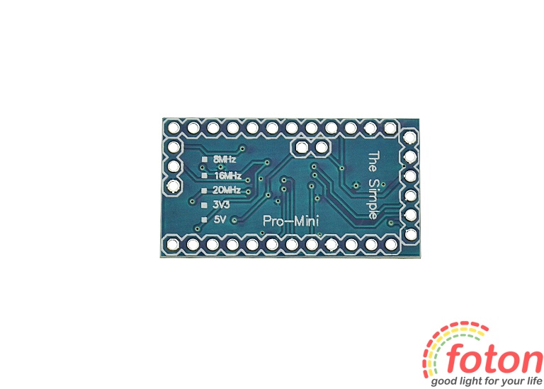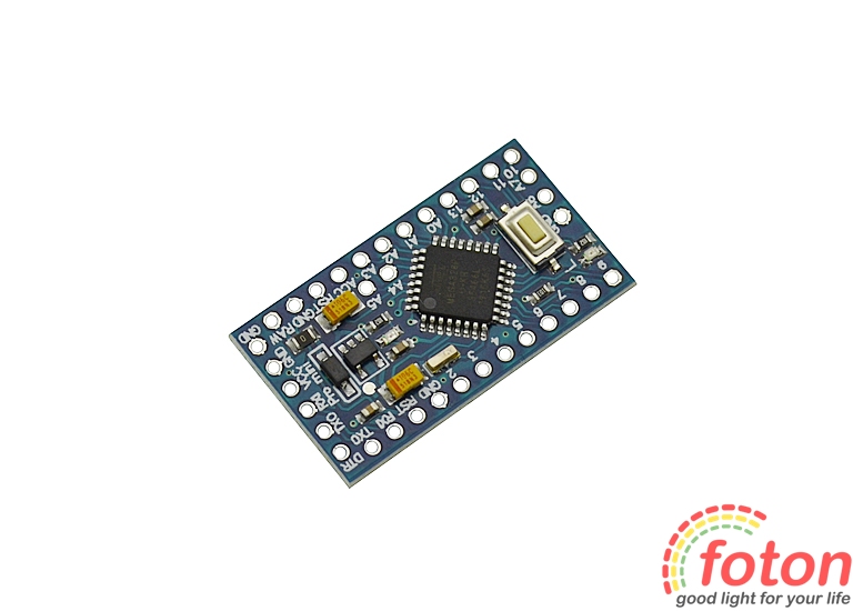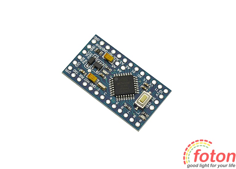 Плата arduino Pro mini побудована на мікроконтролері ATmega328P. Плата призначена для радіоаматорів, які не вперше використовують платформу Arduino. Ця модель плати Arduino pro mini, спроектованої на основі мікроконтролера ATmega328P, є покращеною моделлю платформи Arduino pro mini 168. Основні переваги ATmega328P: 32 КБ FLASH пам'яті, 2 КБ оперативної пам'яті (SRAM) та 1024 байт EEPROM. Працює плата при напрузі 5 В та частоті 16 МГц.