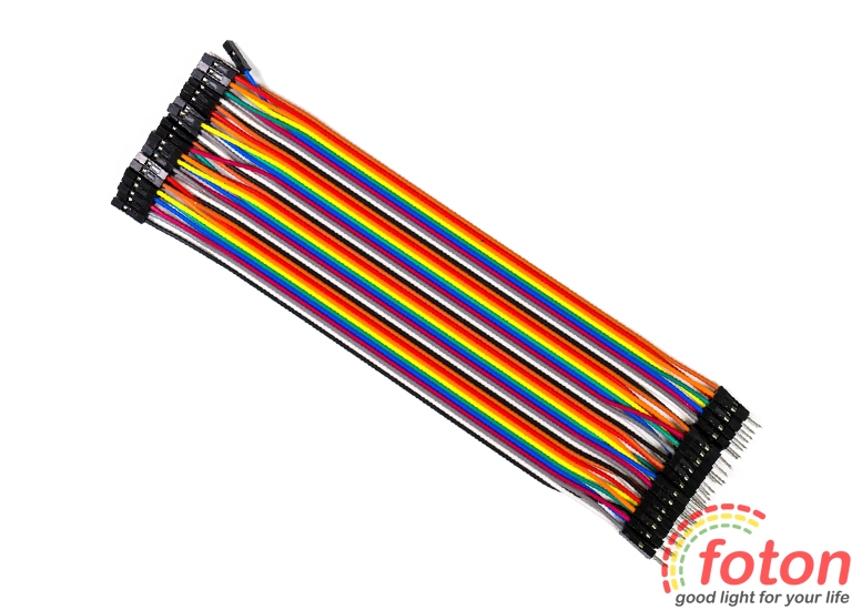 Комплект із 40 шт різнокольорових з'єднувальних проводів завдовжки 200 мм. На кінцях проводів передбачені роз'єми типу "Папа"-"Мама".