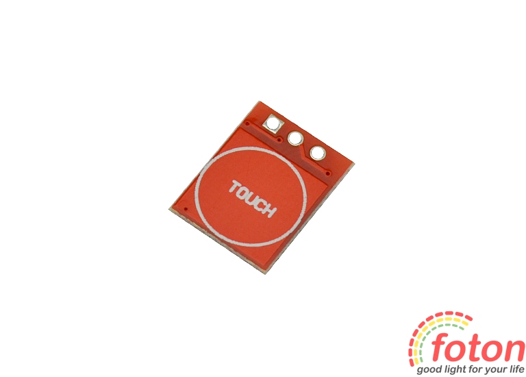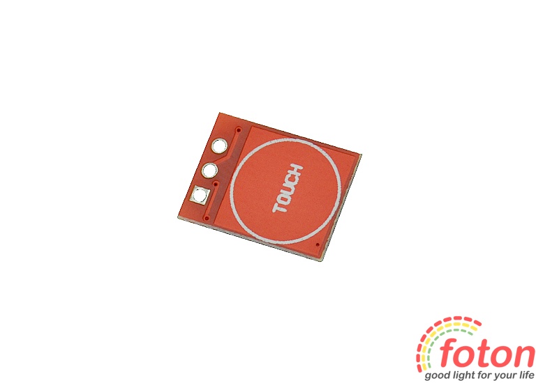 Сенсорна кнопка TTP223 Ардуїно виконана на базі мікросхеми TTP223-BA6 у вигляді безкорпусного модуля. Датчик має майданчик на друкованій платі у вигляді металізованої поверхні з написом "touch". Чутливість TTP223 залежить від конденсатора - місце під який передбачено на платі. При установці конденсатора 50 пікофарад чутливість датчика буде мінімальною.
