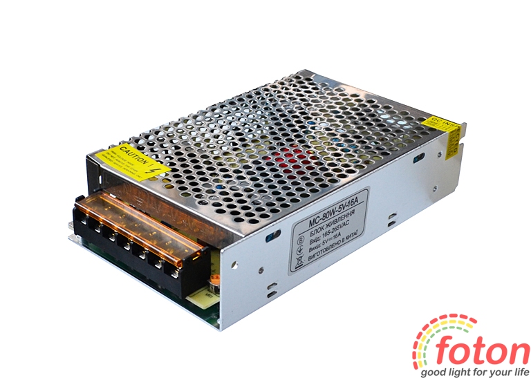 Використовується для монтажу світлодіодної стрічки або електрообладнання з робочою напругою 5 вольт.Вихідна напруга джерела живлення FT-80-5 Standart має високу стабільність та передбачає захист від КЗ (короткого замикання) та перевантажень.