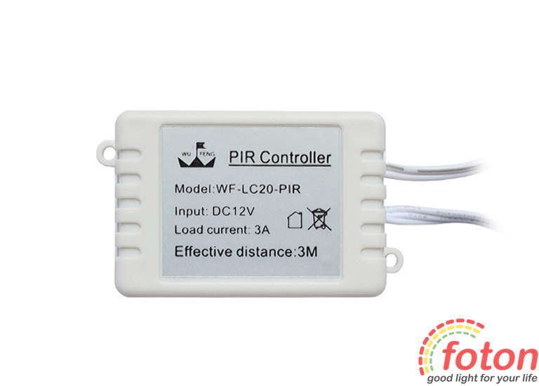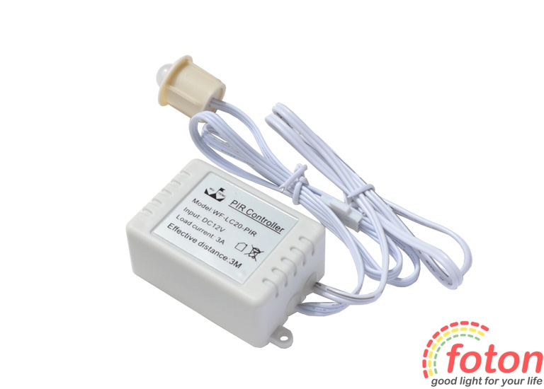 Датчики руху даного типу реагують на рух на відстані до 3 метрів з кутом огляду 120°. Датчик активний лише у темряві, це дозволяє автоматично відключати його у світлий час доби. Датчик руху 12в FT-MS-05 має односторонню дію. При виявленні руху в поле зору датчика він включає освітлювальний прилад на 30 сек +/- 10 сек. Датчик має заводські установки, які не можуть бути змінені.Цей датчик руху 12В використовують у системі нічного світлодіодного підсвічування. При підключенні датчика слід враховувати його максимальну потужність.