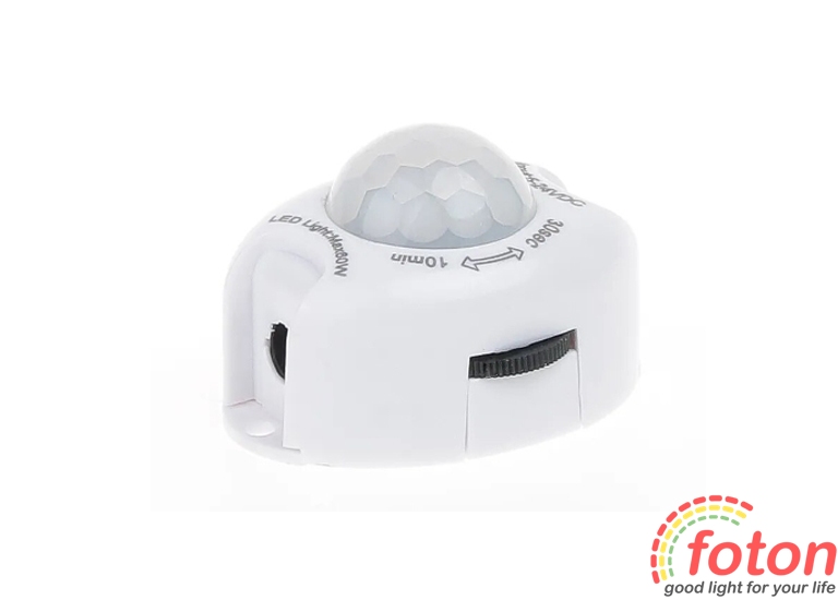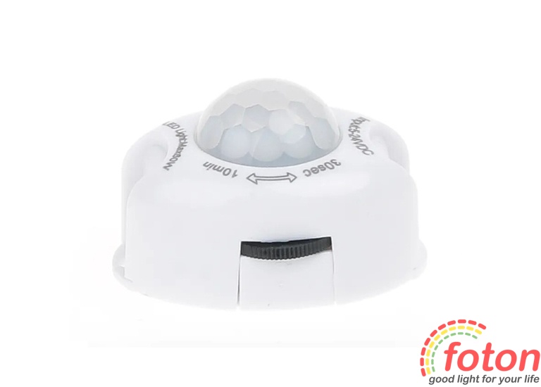 Датчики руху даного типу реагують на рух на відстань до 5 метрів з кутом огляду 120°. Датчик активний лише у темряві, це дозволяє автоматично відключати його у світлий час доби. Також є корисна функція датчика, така як підстроювання час затримки спрацьовування. Ця функція дозволяє встановити необхідний час у проміжку від 30 секунд до 10 хвилин, коли датчик буде подавати напругу на джерело світла 12В.Цей датчик руху 12В використовують у системі нічного світлодіодного підсвічування. При підключенні датчика слід враховувати його максимальну потужність.