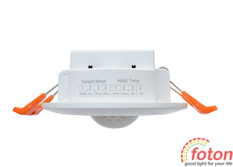 Датчики руху даного типу призначені для автоматичного включення led джерел освітлення в нічний і денний час доби. Рівень освітленості від 0 до 30 лк. Затримка спрацьовування датчика становить 15 сек. до 15 хв. Функція "Ніч/День", а також час коригування часу включення датчика можна виставити за допомогою тумблерів, які розташовані на корпусі.