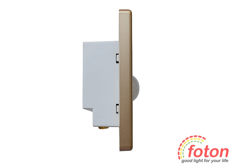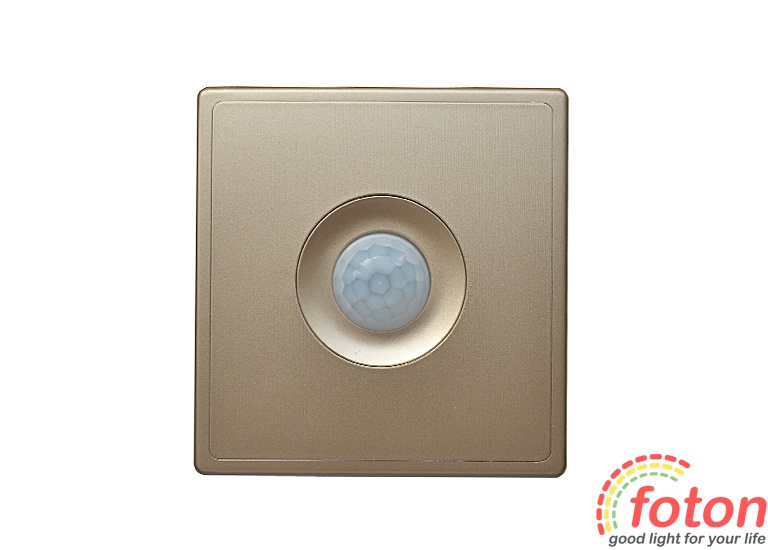 Датчик руху FT-MS-12 виконаний у прямокутному пластиковому корпусі золотистого кольору. Робоча напруга 220 В. Максимальне навантаження led джерела свічення складає максимально 200Вт. Датчик має корпус, який розрахований для встановлення на стіну у монтажний отвір.