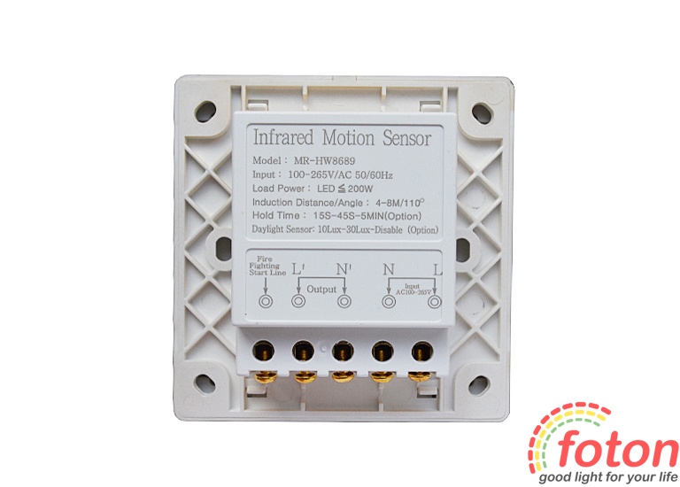 Датчики руху даного типу призначені для автоматичного включення led джерел освітлення в нічний і денний час доби. Рівень освітленості від 0 до 30 лк. Затримка спрацьовування датчика становить 15 сек. до 5 хв. Функція "Ніч/День", а також час коригування часу включення датчика можна виставити за допомогою тумблерів, які розташовані на корпусі (під декоративною кришкою).