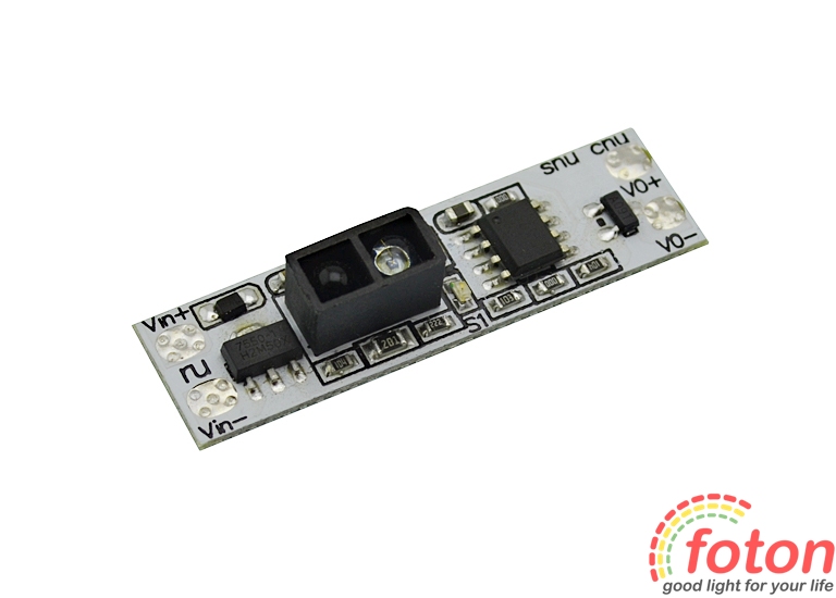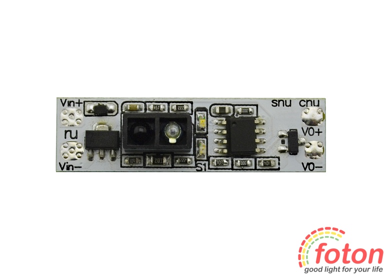 Датчик виконаний у вигляді друкованої плати без корпусу, габаритні розміри якої дозволяють помістити її у світлодіодний профіль. Розміщений датчик на платі є інфрачервоним, тому його активації досить виконати рух у полі видимості сенсора. Датчик реагує на рух на відстані до 10 см. Встановлений біля датчика світлодіод сигналізує про те, що датчик побачив рух і виконує увімкнення або вимкнення підключеного до нього джерела світла. Увімкнення/вимкнення світлодіодної стрічки або лінійки здійснюється після руху в поле видимості датчика.