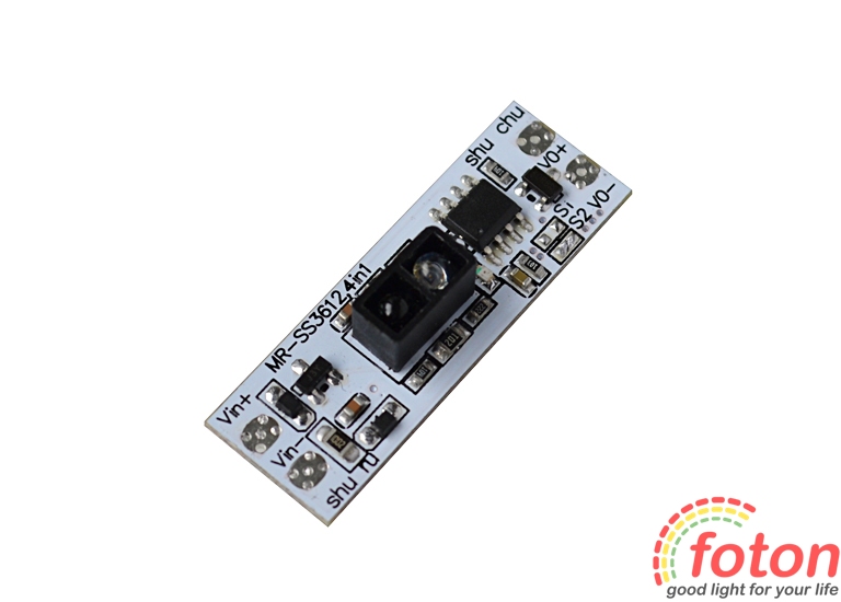 Інфрачервоний датчик відкриття дверей, 12 вольт, максимальне навантаження 36Вт представлений у вигляді плати без корпусу. Застосовується в меблевому підсвічуванні для автоматичного підсвічування шафи під час відкриття дверей.