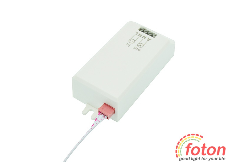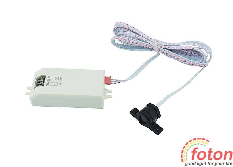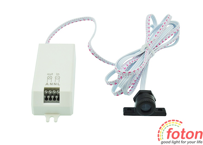 Підключення датчика здійснюється до мережі 220В. Для підключення вхідної напруги використовуються клемні затискачі Input "N" та "L". Підключення джерел освітлення здійснюється через клемні затискачі output "A" та "N". З даним датчиком можна підключати світлодіодні світильники або світлодіодні прожектори з робочою напругою 220В.