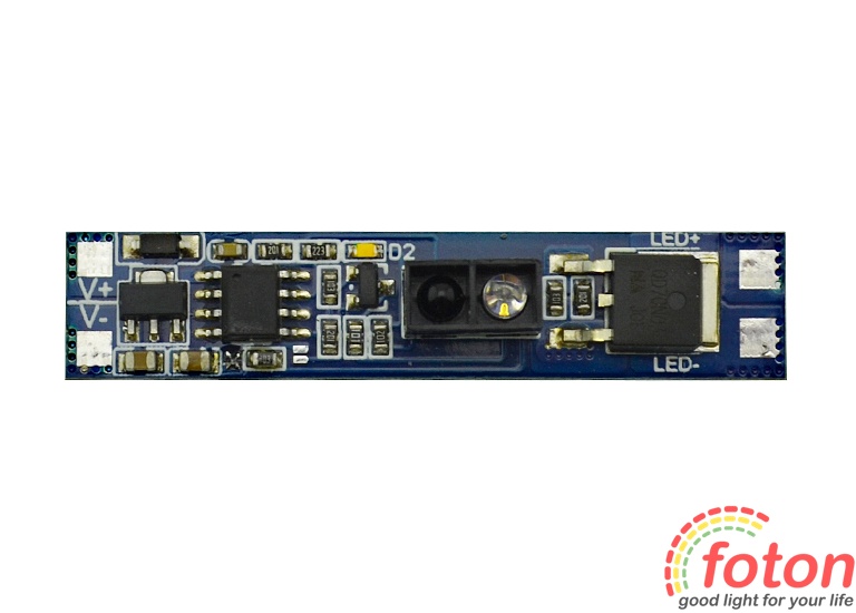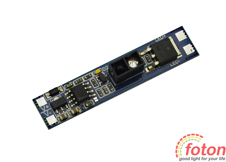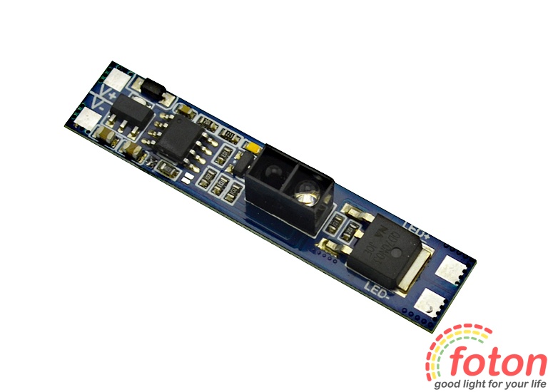 Цей IR перемикач на рух руки застосовується для керування світлодіодним підсвічуванням. З його допомогою можна виконати включення та відключення живлення, а також керувати яскравістю світлодіодних стрічок, led лінійок, модулів. Управління здійснюється безконтактно з відривом до 10 див від датчика. Для увімкнення та вимкнення достатньо виконати рух рукою в зоні видимості датчика. Димування (керування яскравістю) виконується шляхом утримання руки в зоні видимості датчика до досягнення необхідного рівня освітлення. Світлодіодне підсвічування білого теплого кольору допомагає визначити датчик у темряві. Останній режим яскравості свічення не зберігається при вимкненні живлення.