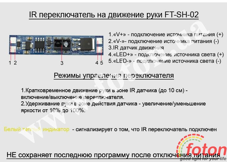 | Схема підключення: | IR Hand Sensor switch FT-SH-02 |