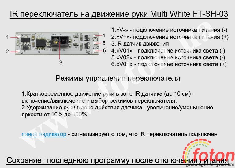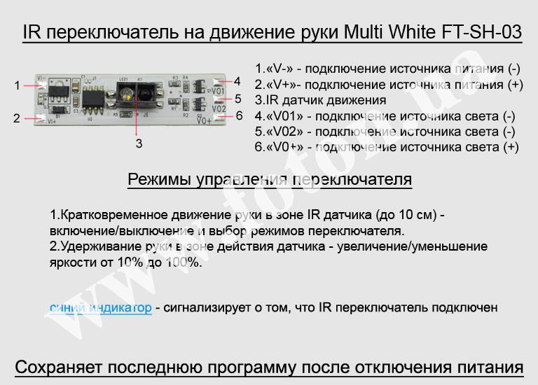 | Схема підключення: | IR Hand Sensor switch Multi White FT-SH-03 |