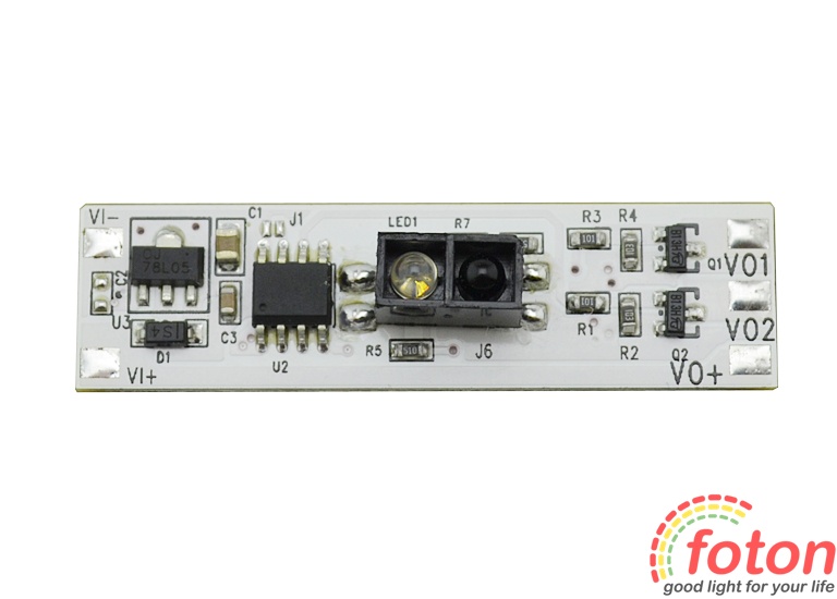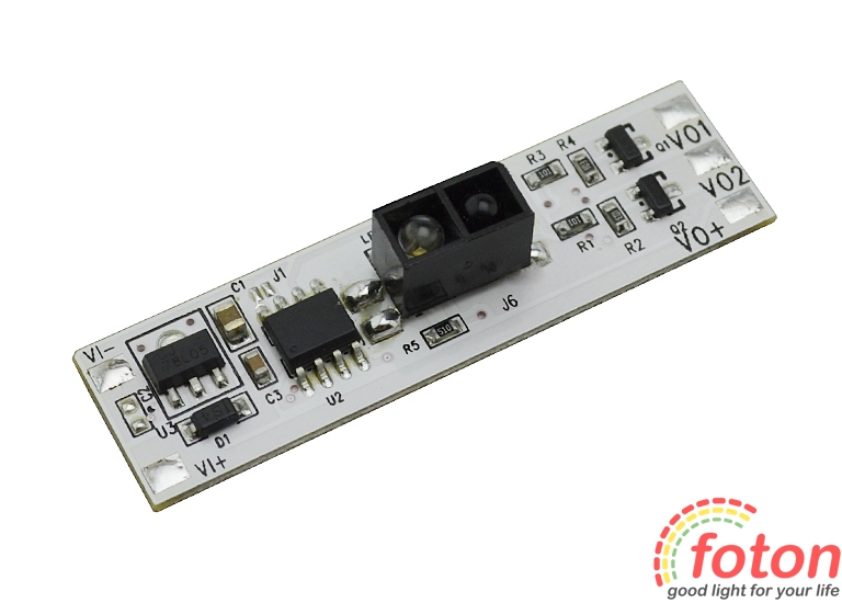 З його допомогою можна виконати включення та відключення живлення, а також керувати яскравістю світлодіодних стрічок, led лінійок, модулів. Управління здійснюється безконтактно з відривом до 10 див від датчика. Щоб вибрати необхідний режим світіння стрічки (3000К, 4100К, 6000К), достатньо виконати рух рукою в зоні видимості датчика. Подальший рух перемикає режими свічення світлодіодної стрічки. Димування (керування яскравістю) виконується шляхом утримання руки в зоні видимості датчика до досягнення необхідного рівня освітлення. Вимкнення датчика можливе через 3 секунди після останнього вибору режиму або включення. Світлодіодне підсвічування синього кольору допомагає визначити датчик у темряві. Останній режим яскравості свічення зберігається при вимкненні живлення.