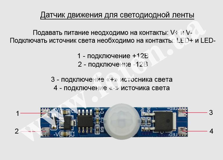 | Схема підключення: | Датчик руху для стрічки |