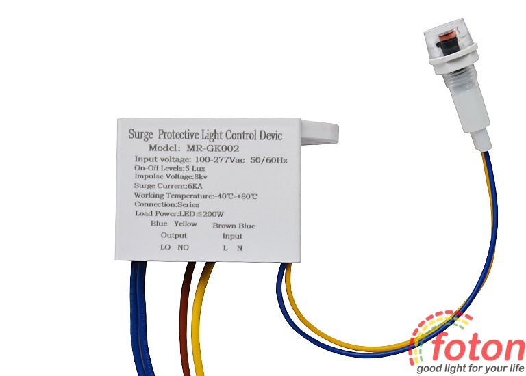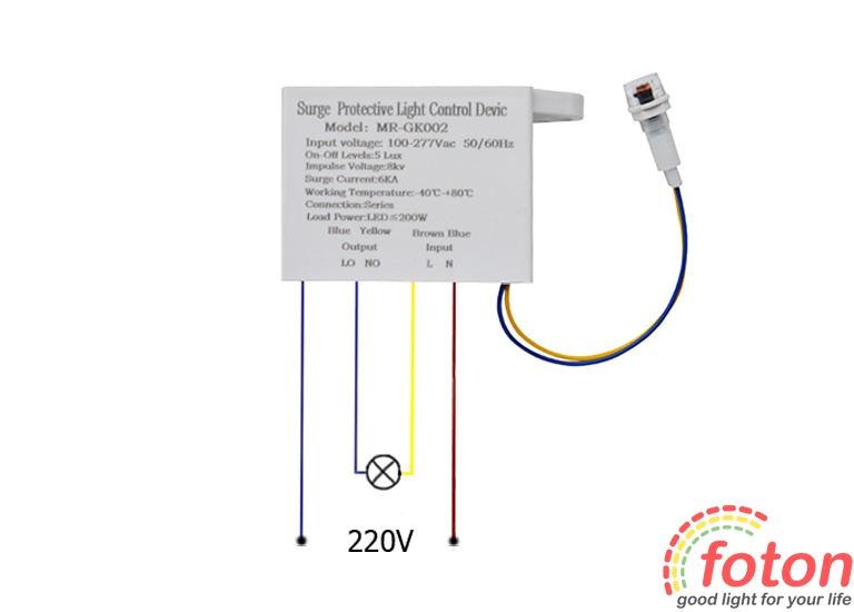 Сутінковий датчик FT-MR-GK002 виконаний в пластиковому герметичному корпусі. Робоча напруга 220В.