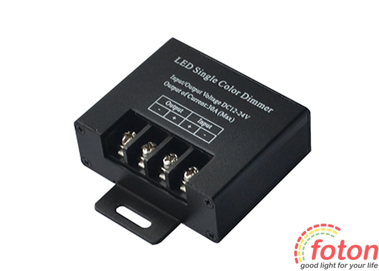 Вихідна напруга - 12 В, максимальний струм - 30 А. Підключення димера здійснюється за допомогою гвинтових затискачів.