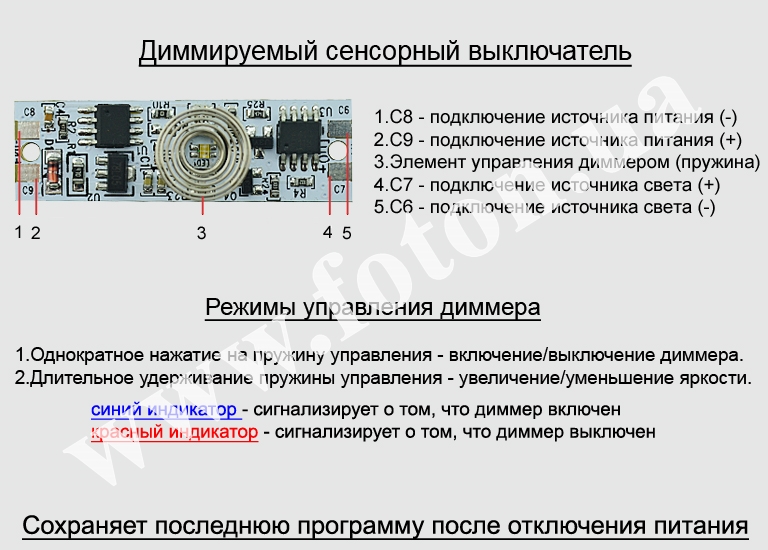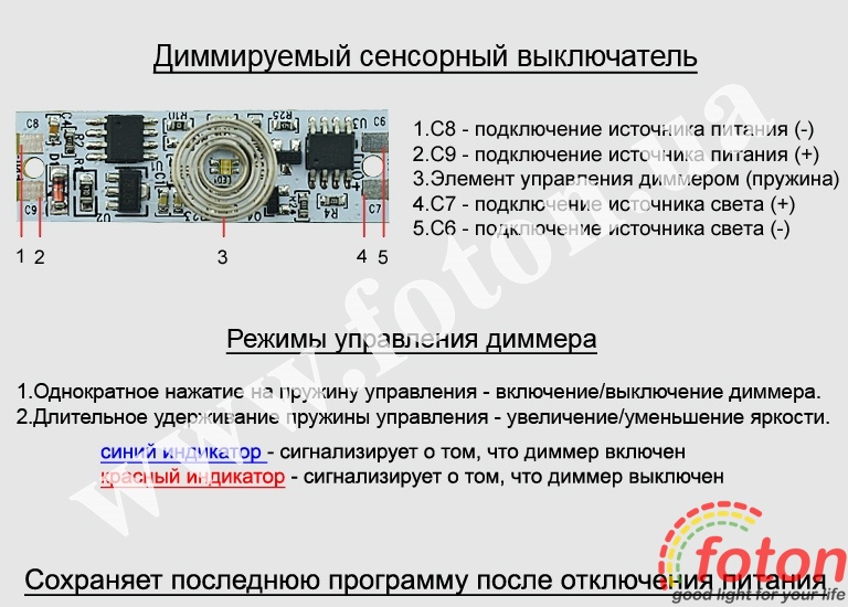 | Схема підключення: | сенсорний вимикач |