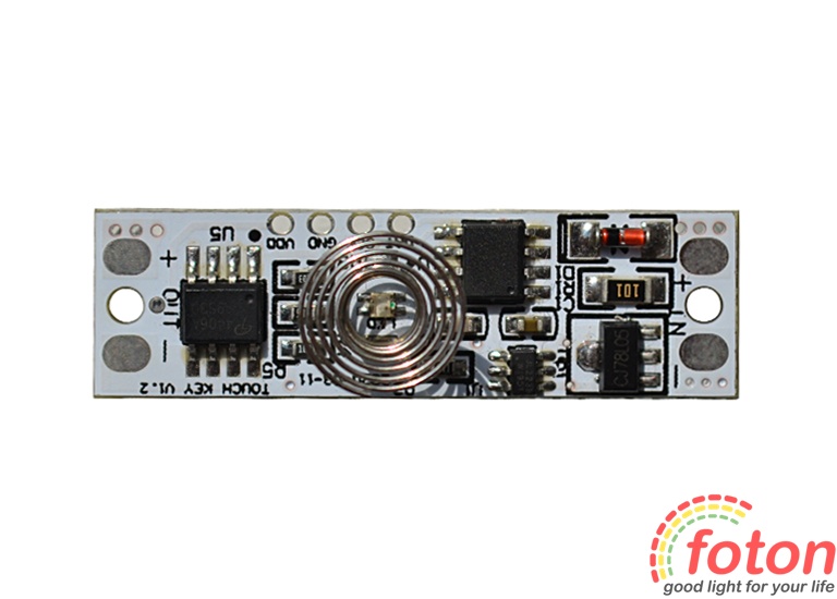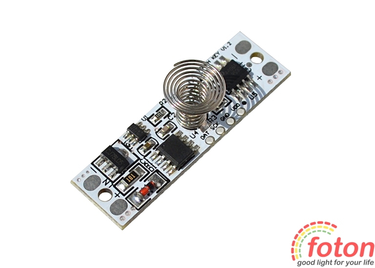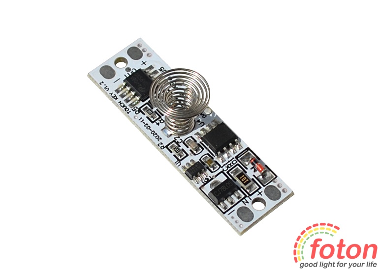 Даний вимикач для світлодіодної стрічки має можливість увімкнення та вимикання світлодіодної стрічки за допомогою легкого дотику. Також можна регулювати яскравість світлодіодної стрічки від 10% до 100%. Для цього достатньо утримати палець на сенсорі. Мініатюрні розміри вимикача дозволяють встановлювати його у профіль для світлодіодної стрічки.