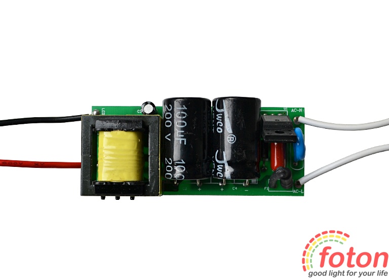 Позначені контактні майданчики L і N з одного боку призначені для подачі вхідної напруги 220В, полярність не важлива. З іншого боку позначення "LED+" та "LED-" для підключення світлодіодів або світильника.