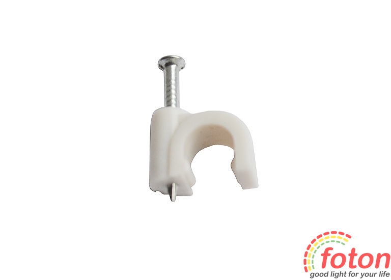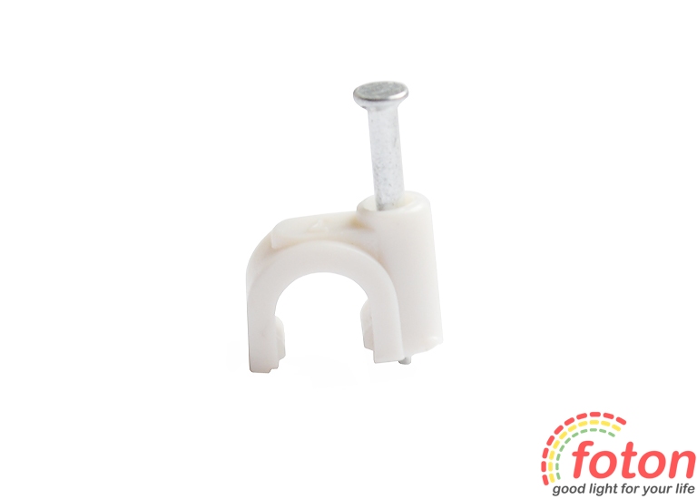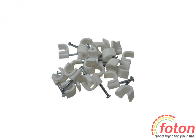 Скоби пластикові в комплекті зі цвяхом призначені для швидкого та надійного кріплення круглих кабелів та дротів до поверхонь стін, стель та несучих конструкцій.Підходить для кабеля діаметром 7 мм. Ціна вказана на 1 шт.