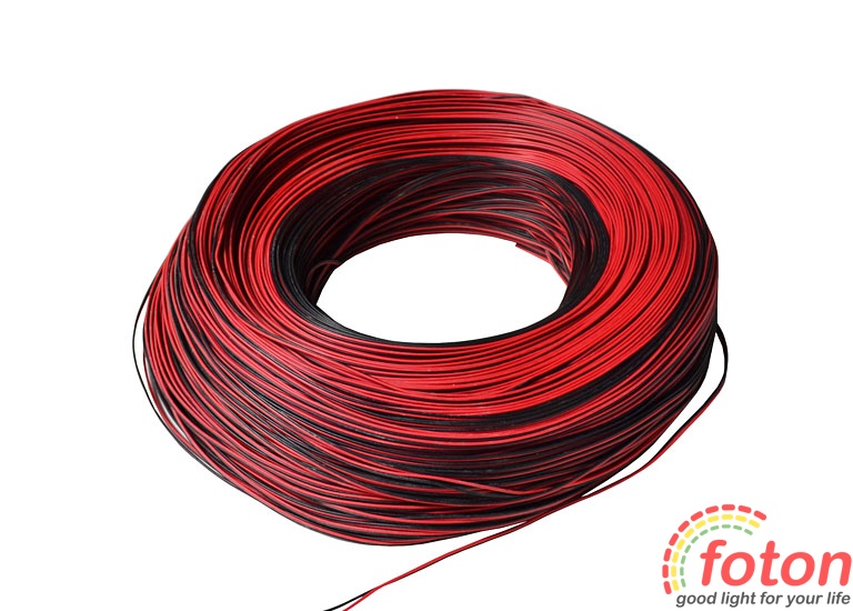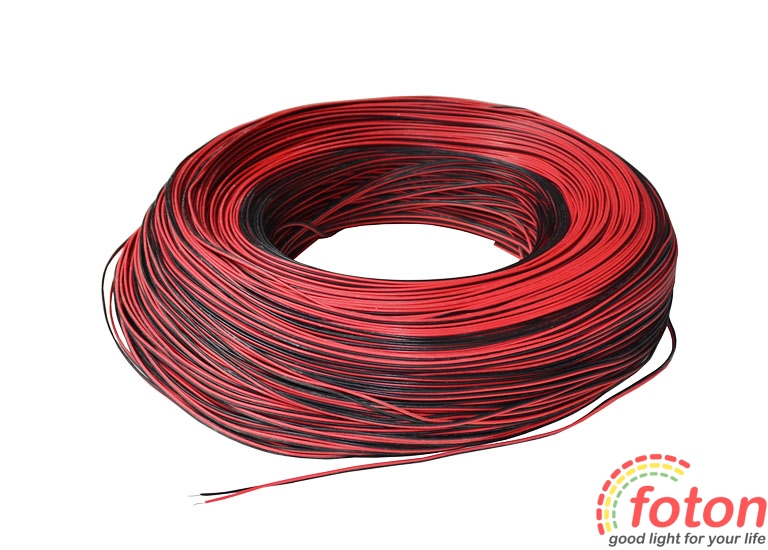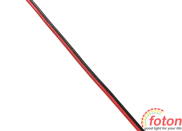 Плоский мідний кабель ПВХ 2х0,3 призначений для живлення світлодіодної стрічки або світлодіодів. Жили з лудної міді. Добре піддається пайці. Має кольорове позначення проводів: червоний та чорний.