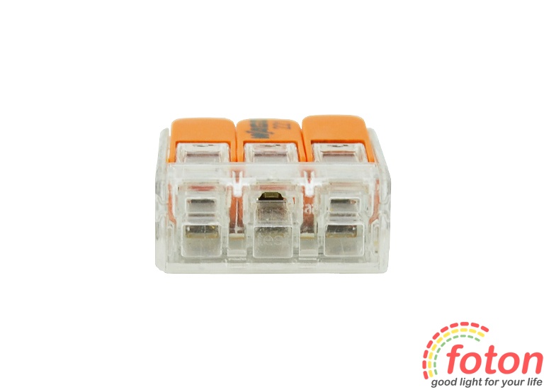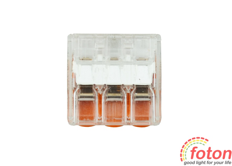 Клемна колодка призначена для з'єднання трьох проводів. Можна використовувати як одножильні так і багатожильні дроти.