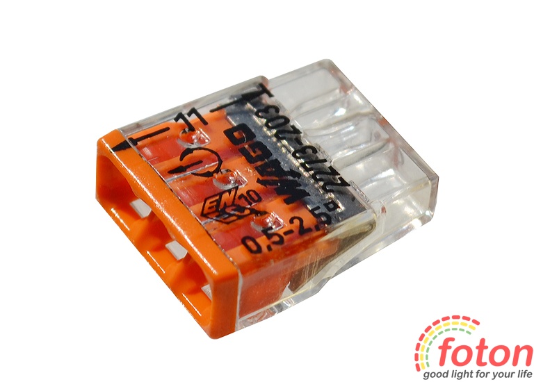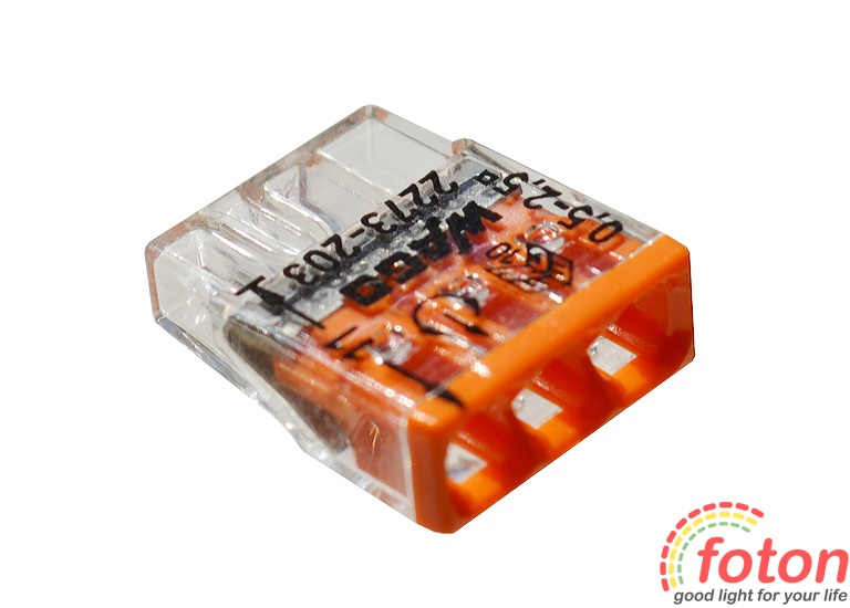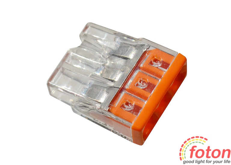 Клемна колодка призначена для з'єднання трьох проводів. Можна використовувати як одножильні так і багатожильні дроти.