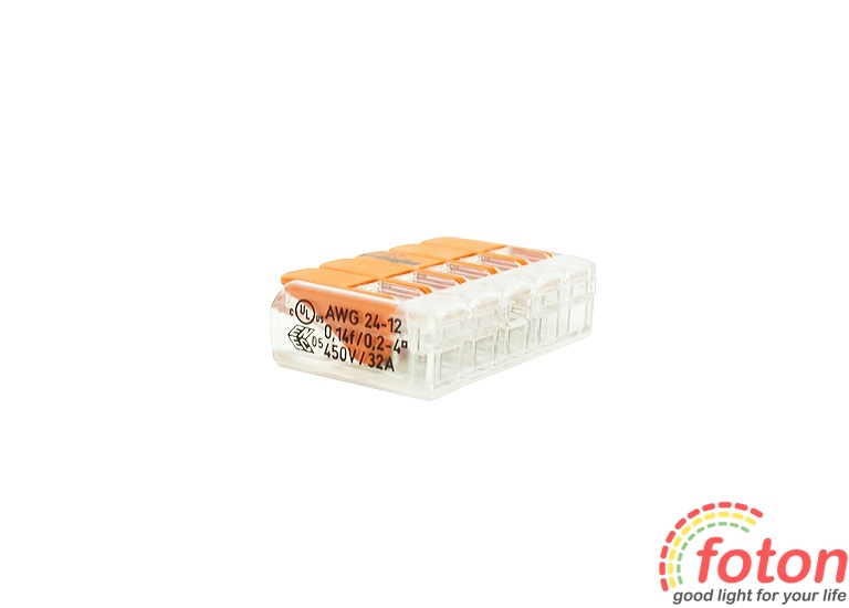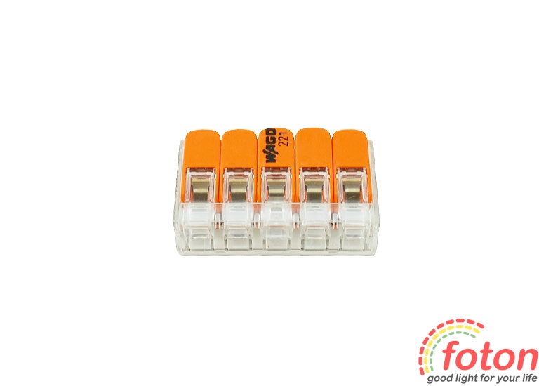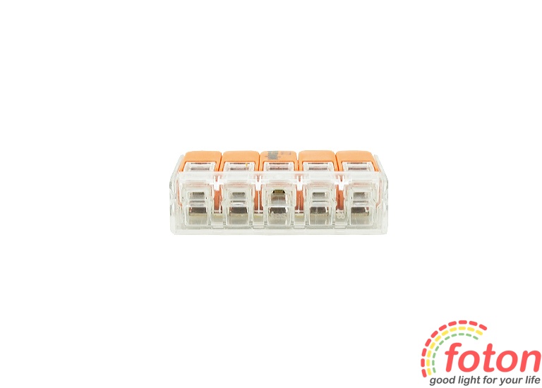 Клемна колодка призначена для з'єднання п'яти проводів. Можна використовувати як одножильні так і багатожильні дроти.