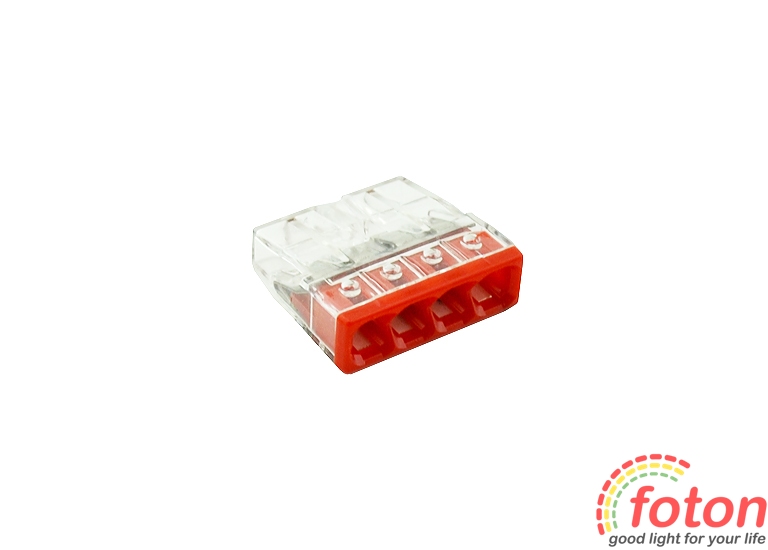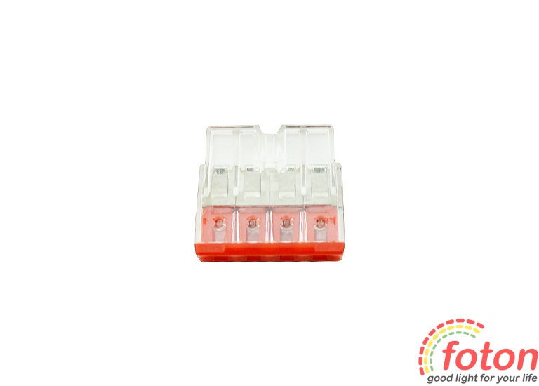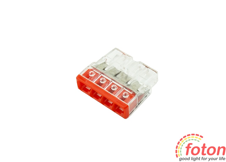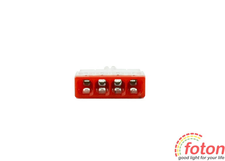 Клемна колодка призначена для з'єднання чотирьох дротів. Можна використовувати як одножильні так і багатожильні дроти.
