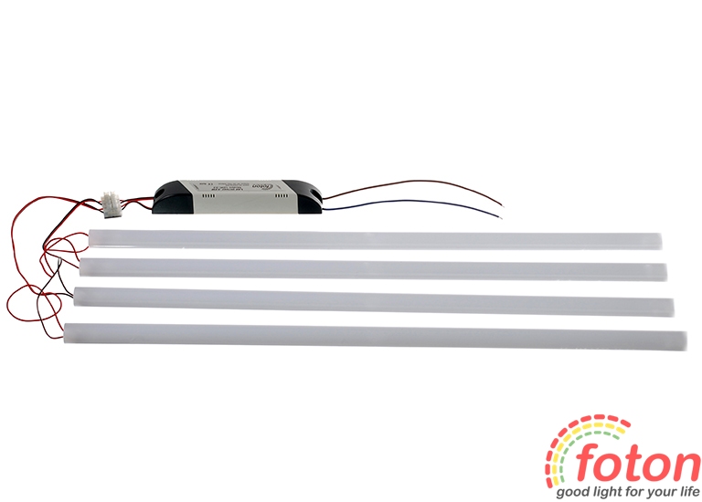 | Комплект постачання: | - Світлодіодні лінійки - 4 шт.- Розсіювач - 4 шт.- Драйвер - 1 шт.- Кріплення для лінійок - 12 шт.- 3М скотч - 1 шт. |