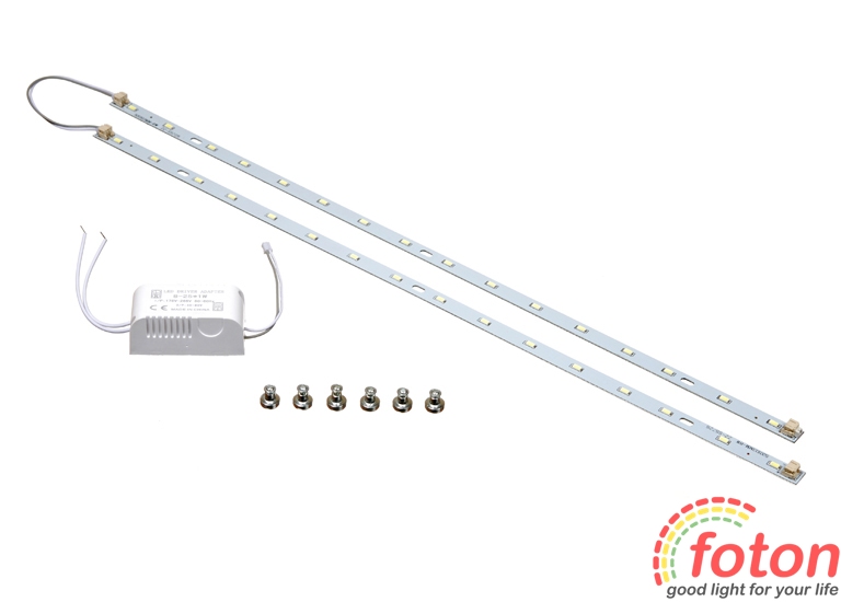 Комплект переобладнання растрового світильника FT-RS-03 призначений для модернізації або виробництва світлодіодних світильників. Комплект складається з 2 з'єднаних алюмінієвих плат, із встановленими на них світлодіодами, драйвера та набору кріплень. Комплект повністю готовий до встановлення.