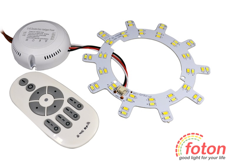 Комплект переобладнання круглого світильника FT-RS-32 Multi White призначений для модернізації або виробництва світлодіодних світильників круглої форми. Складається з алюмінієвої плати зі встановленими на ній світлодіодами, драйвером та пультом управління. Комплект повністю готовий до встановлення.