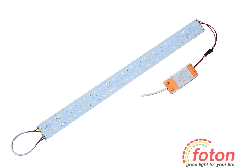 Комплект переобладнання растрового світильника призначений для модернізації або виробництва світлодіодних світильників. Комплект складається з 2 з'єднаних алюмінієвих плат, із встановленими на них світлодіодами та драйвера. Комплект повністю готовий до встановлення.