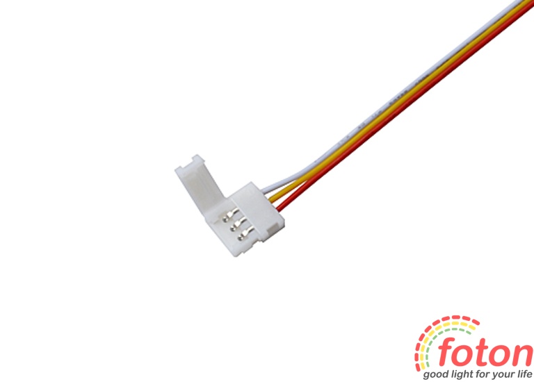 Даний конектор має пластикову основу всередині якої розміщені металеві клемні контакти з яких виходять дроти довжиною 13 см. У конектор вкладається світлодіодна стрічка, і за допомогою затискного механізму закріплює контакти. контакту.
