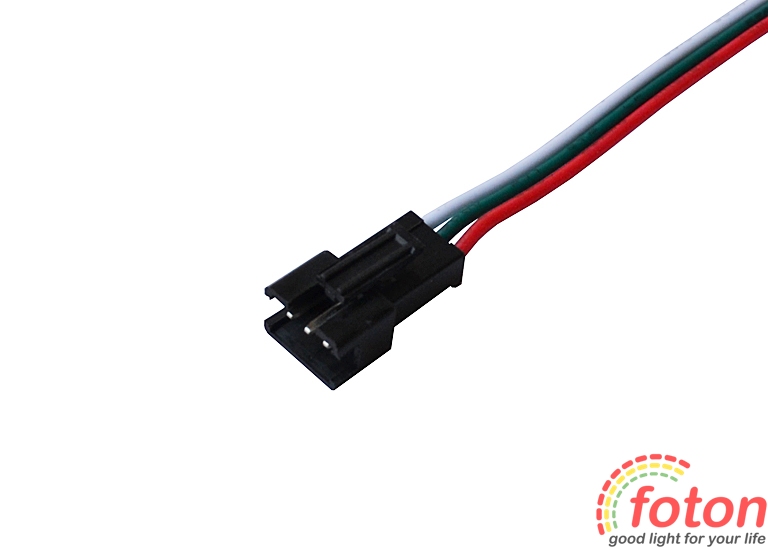 Даний з'єднувальний кабель є пристроєм, що складається з трьохконтактного конектора і проводу довжиною 13 см. Конектор виконаний із пластику, який є термостійким та міцним до ударів. Клас захисту ІР20. Використовується виключно у сухому середовищі. Дані конектори широко використовуються в підключенні світлодіодних стрічок або модулів.