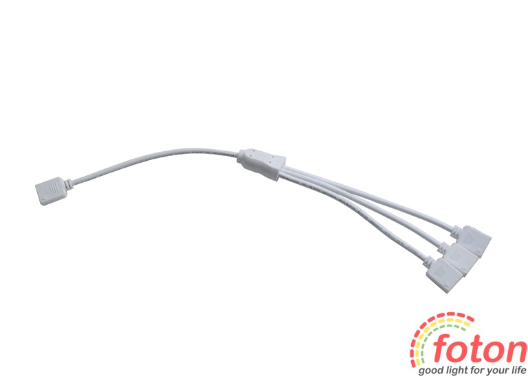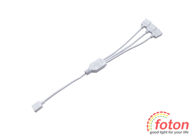 Коннектор складається з трьох чотирьох контактних роз'ємів "Мама" та одного загального чотирьох контактних роз'ємів "Мама", від якого подається сигнал на гілку роз'ємів. Розмір роз'єму стандартний для RGB світлодіодної стрічки.