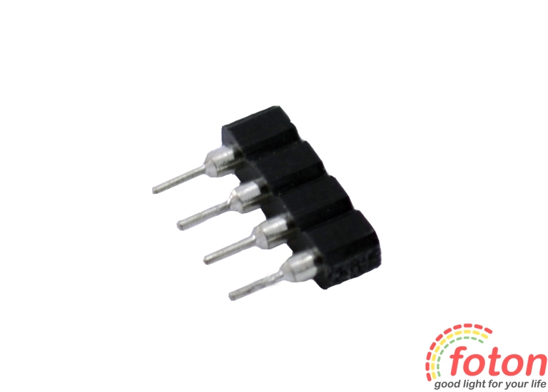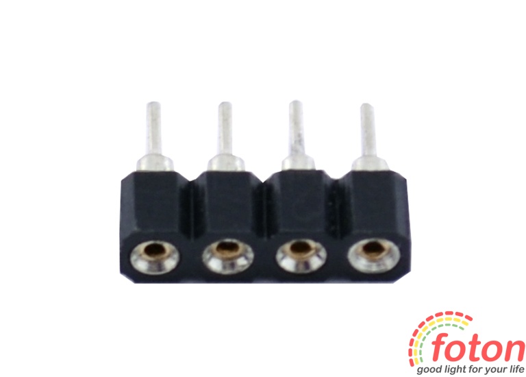 З'єднувальний конектор є невеликим пластиковим елементом з металевими чотириконтактними з'єднаннями. світлодіодної стрічки RGB, контролера і т.д.
