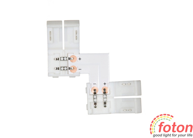 Такий кутовий конектор використовують для з'єднання світлодіодних стрічок SMD 5050. роз'єму по 2 контакти.