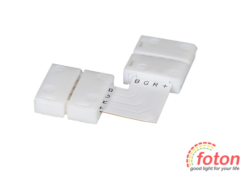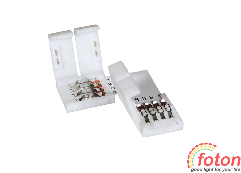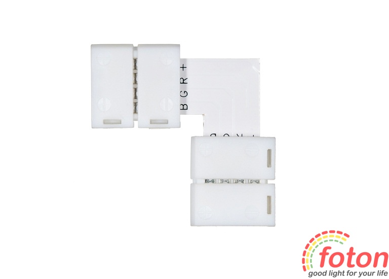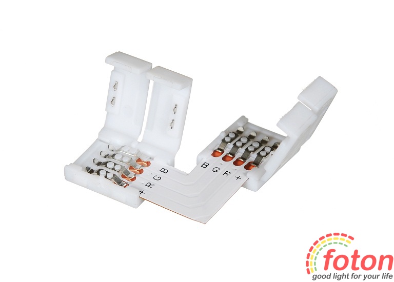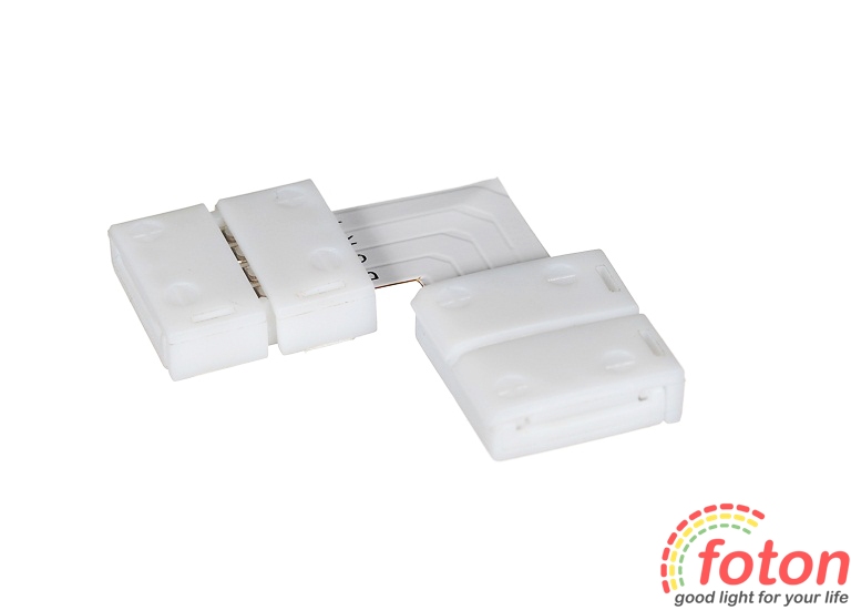 За допомогою конектора для з'єднання світлодіодних стрічок можна виконати монтаж без паяння. Він простий у застосуванні, має невеликі габаритні розміри. Застосовуються для кутового з'єднання світлодіодних стрічок без паяння. Має фіксований кут напряму 90°